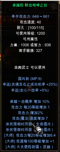 [3]:血色天使级别以上9属性带大天使祝福(武器)+等级/攻速装备,随机职业,概率12%,举例
