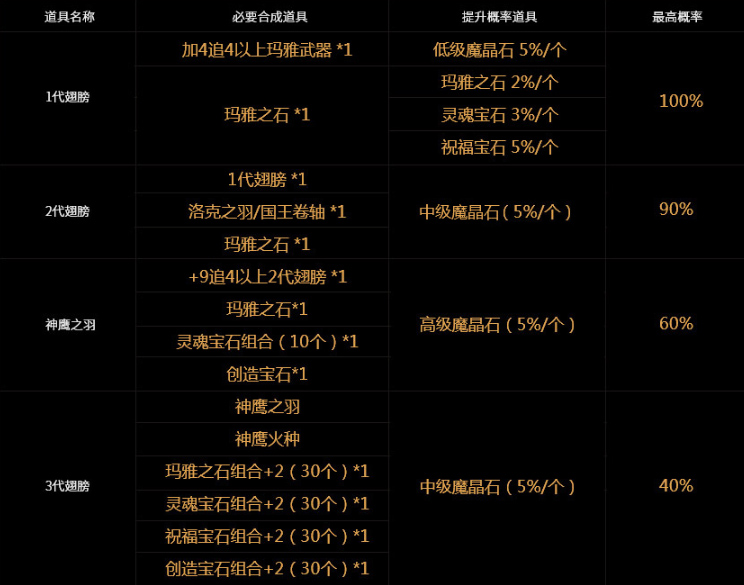 4代翅膀合成条件
