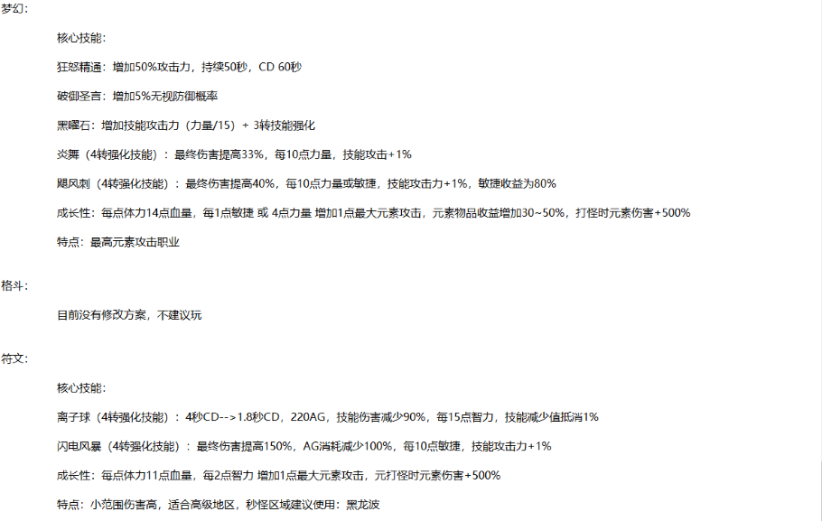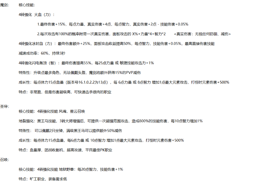 3.新职业拥有与物理职业类似的魔攻百分比加成