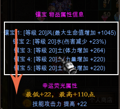 1.单件装备镶嵌满1~5级荧光宝石可出现的幸运属性: